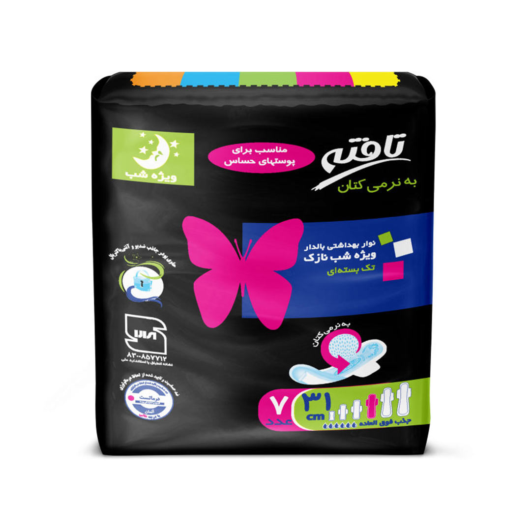 نوار بهداشتی تافته، انتخابی هوشمندانه برای روزهای خاص شما! با جذب بالا و لایههای نرم و تنفسپذیر، حسی از راحتی و اطمینان را تجربه کنید. طراحی منحصر به فرد آن، حداکثر حفاظت و آزادی حرکت را فراهم میکند. نوار بهداشتی تافته، همدم روزهای پرانرژی شما! با ما، همیشه آماده و مطمئن باشید!