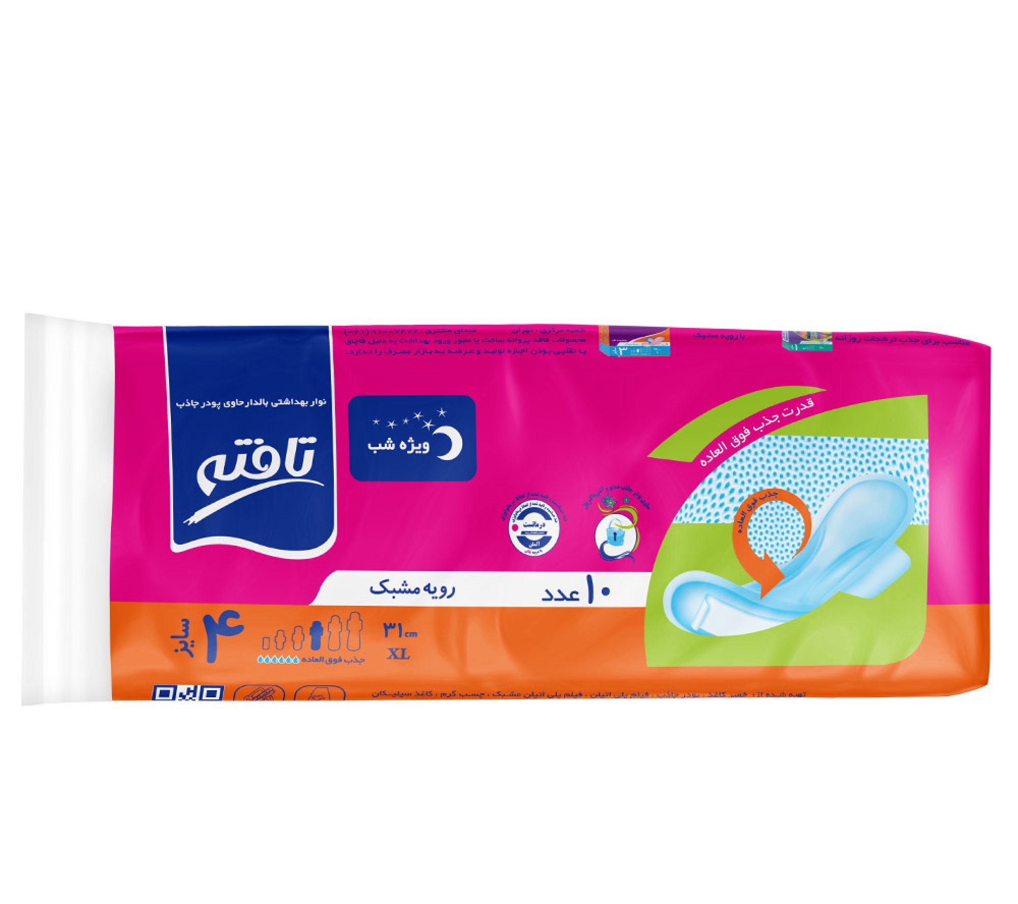 با نواربهداشتی تافته، راحتی و اطمینان را در دوران حساس خود تجربه کنید. این محصول با قدرت جذب فوقالعاده و طراحی منحصربهفرد، محافظت کامل را به شما هدیه میدهد. ضد حساسیت و با کارایی بالا، همراه مطمئن شما در روزهای خاص. از تجربهای بینظیر و اطمینانبخش لذت ببرید!