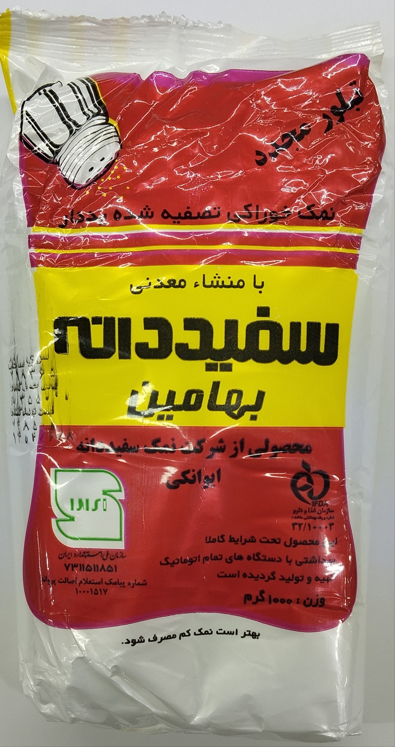 نمک سفیددانه 1 کیلویی